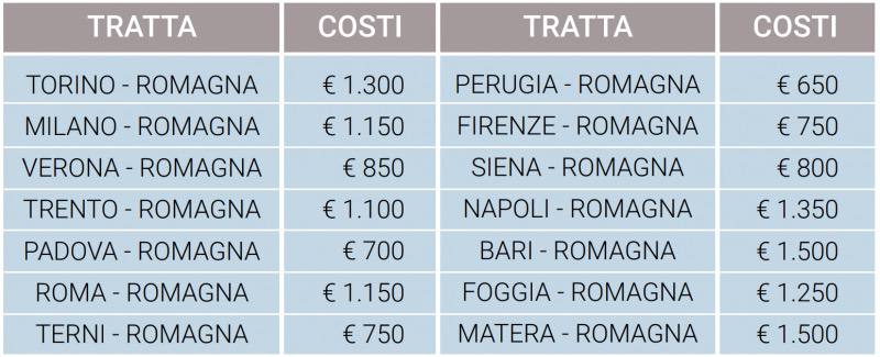 Vi riportiamo a titolo dimostrativo alcune tratte di trasporto: